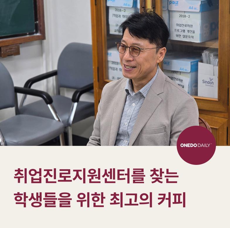 이번에는 취업에 대한 고민과 어려움이 많은 학생들을 위해 원두데일리의 맛있는 커피를 제공하고 있는